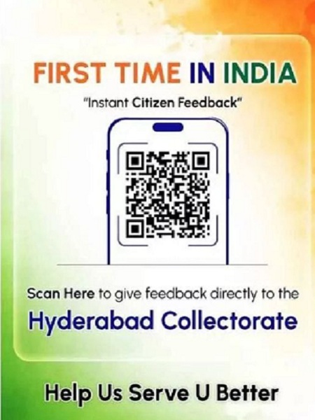 હૈદરાબાદ જિલ્લામાં જાહેર સેવા કાર્યક્ષમતા વધારવા માટે દેશની પ્રથમ QR કોડ ફીડબેક પ્રણાલીનો આરંભ