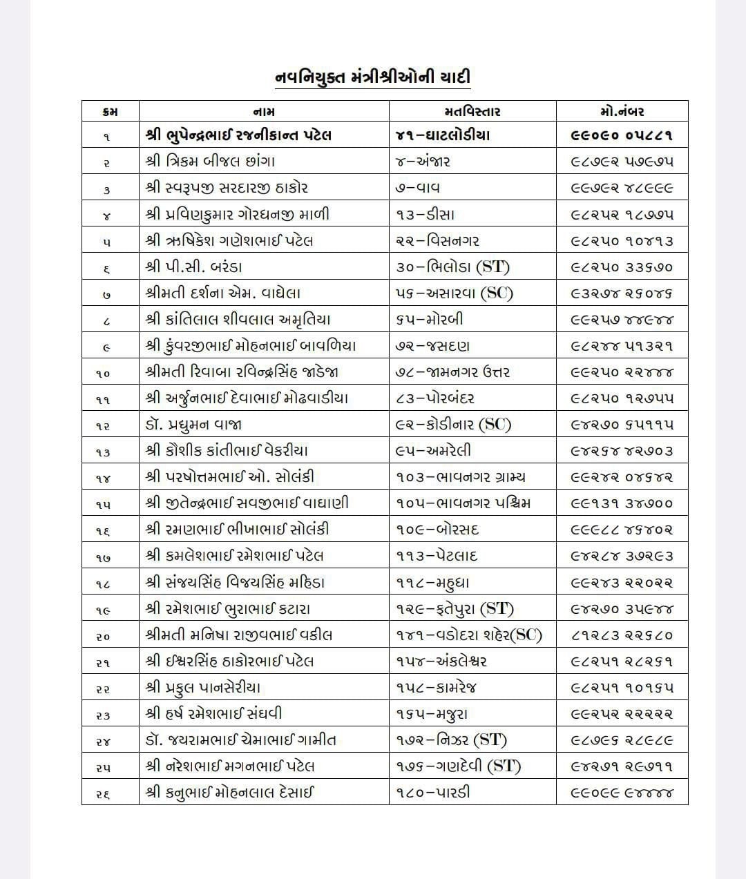 ગુજરાતનાં મંત્રીમંડળની ફેરરચના: સંપૂર્ણ લિસ્ટ જૂઓ, 26 મંત્રીઓએ શપથ લીધા, હર્ષ સંઘવી બન્યા નાયબ મુખ્યમંત્રી